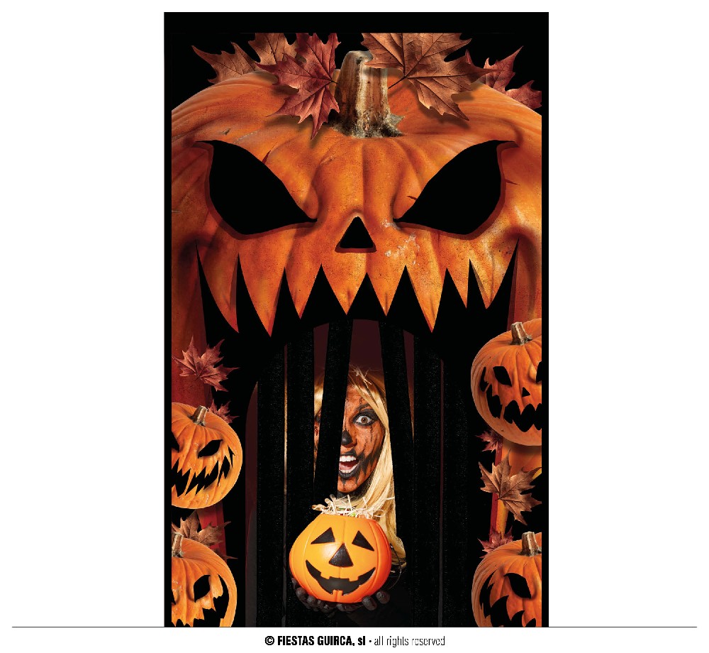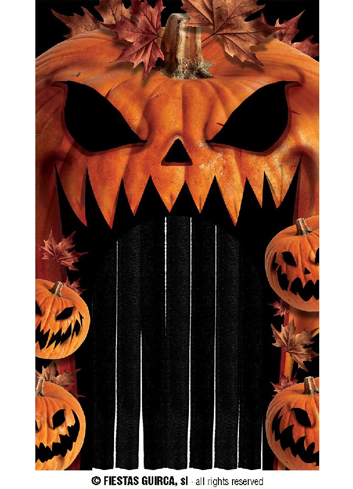 DECOR. PUERTA CON CORTINA, 145X240 CMS.CALABAZAS