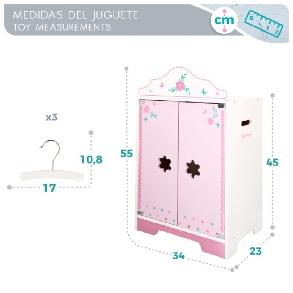 WOOMAX-ARMARIO DE MADERA MUÑECAS C/3 PERCHAS +3A