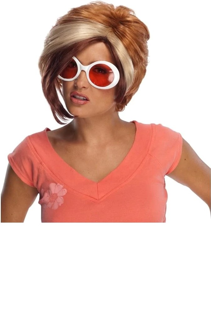 PELUCA PIXIE CASTAÑA CON MECHON RUBIO