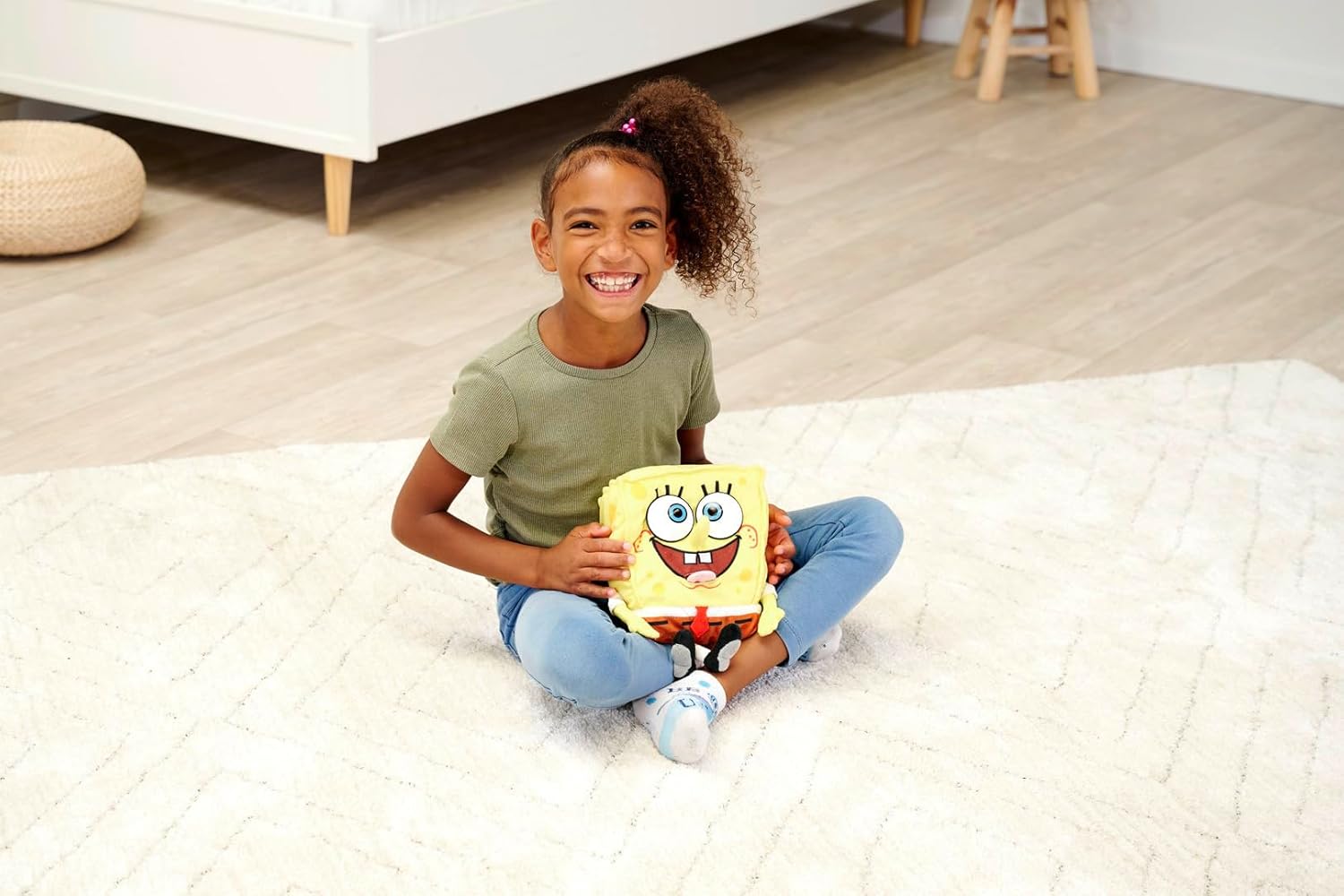Peluche Bob Esponja con función – El famoso bromista de Fondo de Bikini también hace lo que mejor sabe hacer como peluche blandito: ¡caras divertidas, ruidos graciosos y bromas desternillantes! El nuevo personaje de peluche te acompañará a todas partes, es increíblemente tierno y te espera para vivir muchas aventuras Funciones sorprendentes – Ya sea una lengua para sacar, sonido al agitar y presionar la nariz u ojos en blanco: el peluche de 30 cm de altura de Bob Esponja Pantalones Cuadrados está lleno de sorpresas. . El personaje favorito de la televisión Bob Esponja, en color amarillo, está hecho de suave peluche y mide 30 cm de alto, tanto niños como adultos se divierten con él. Artículo divertido y fan – Como juguete de Bob Esponja con licencia oficial, la figura interactiva de Bob Esponja tiene, naturalmente, el mismo aspecto que la famosa esponja amarilla de la serie de Nickelodeon. A partir de 5 años – El peluche de Bob Esponja es adecuado para adultos y niños . Se incluyen las pilas necesarias de 1,5 V-R03-AAA (2 piezas). ¿Quién vive en la piña en el fondo del mar? Bueno, por supuesto: ¡Bob Esponja! El personaje que siempre está de buen humor, ahora está disponible como muñeco de peluche que no sólo quiere que lo mimen, sino que con sus divertidas funciones también hace reír a grandes y pequeños.