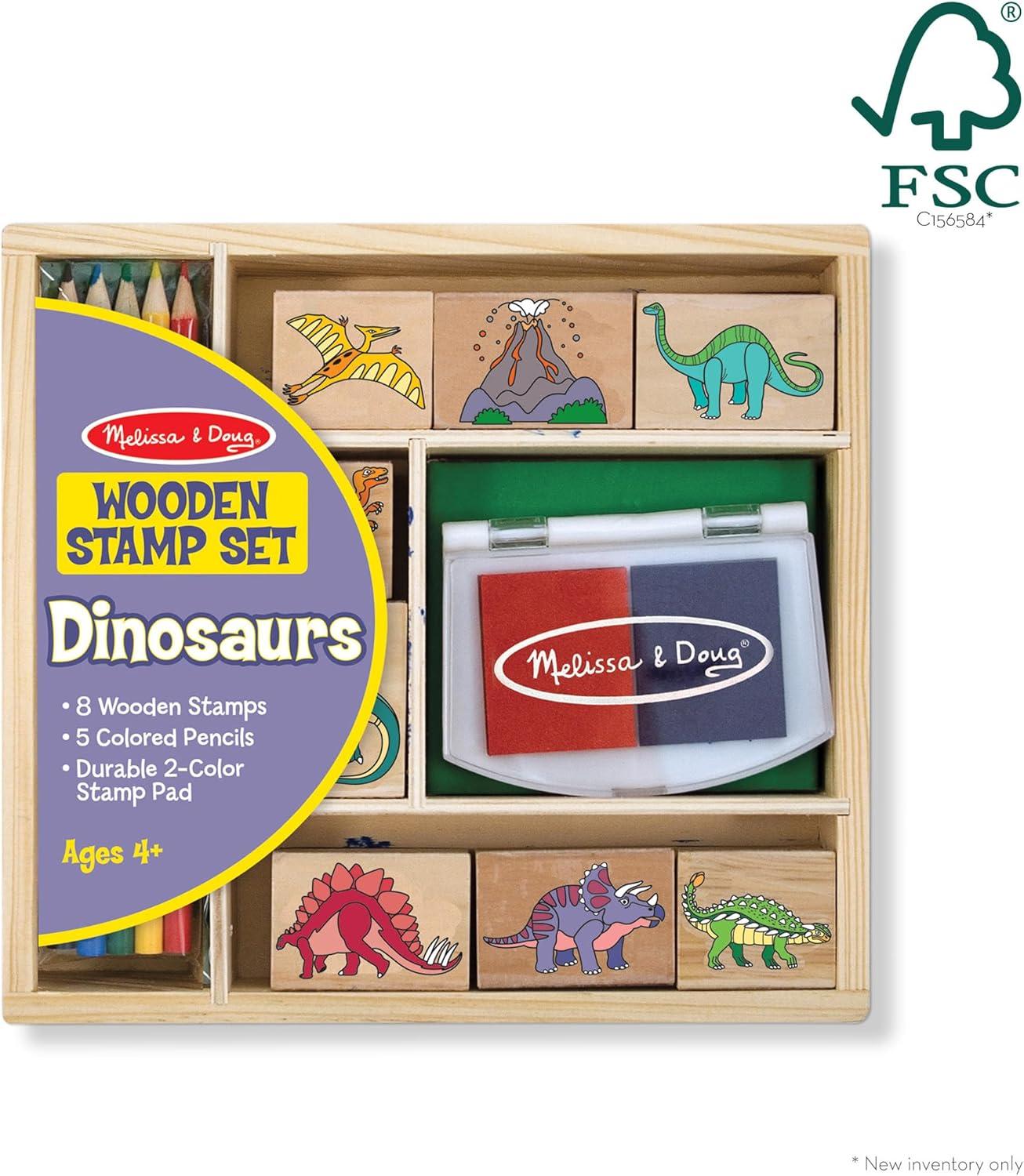 Juego de Sellos de Dinosaurios, Sellos Infantiles de Madera: Dinosaurios, Volcán + Tinta y Lápices d