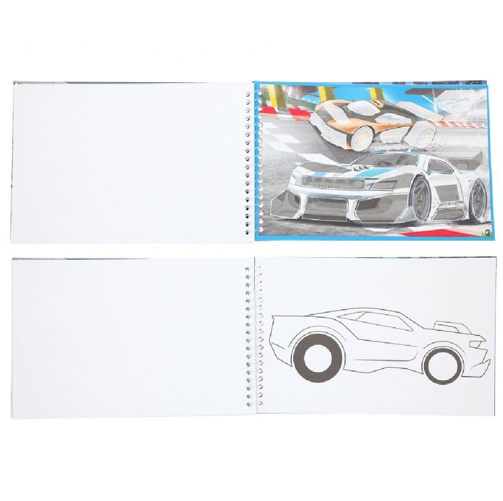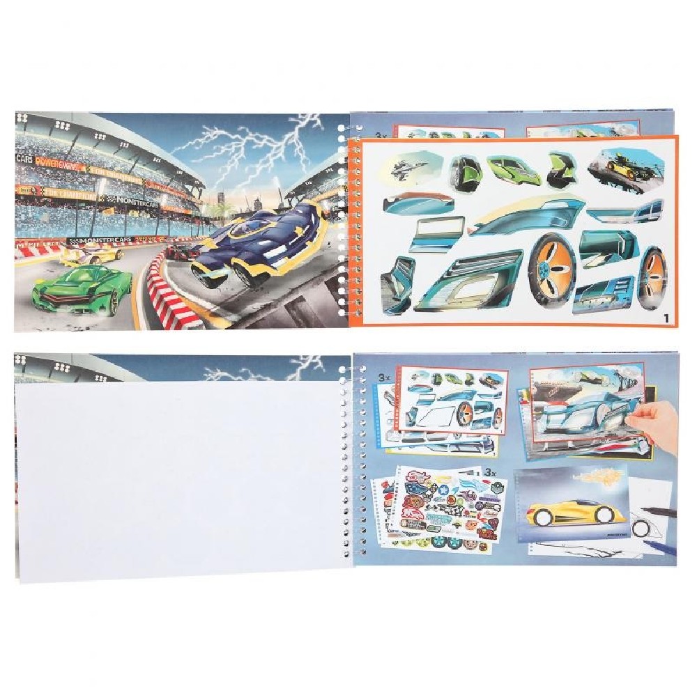 CUADERNO COLOREAR MONSTER CARS PEGATINAS COCHES
