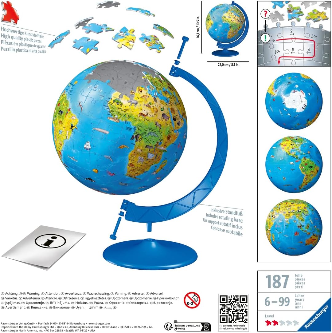 GLOBO TERRÁQUEO: La idea de regalo perfecta para explorar el mundo y conocer todos los animales. Monta tu maqueta y conviértela en una decoración ideal para cualquier escritorio