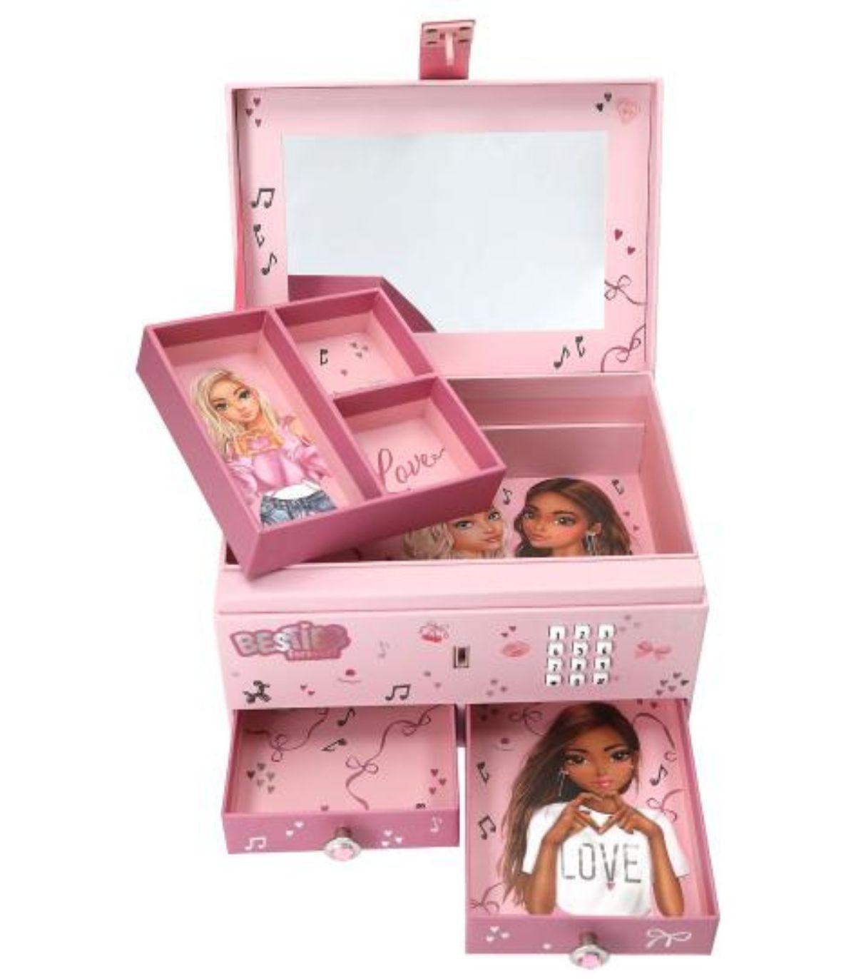 Protege tus tesoros con este Top Model Joyero Grande Con Código My BFF, especialmente diseñado para niñas desde los 6 años que quieren un rincón chic y seguro para sus joyas. Con un práctico cierre de 4 dígitos, podrás bloquearlo con tu código personal, y al activarlo escucharás un suave sonido “beep” que añade un toque de magia y privacidad. Su tapa rígida presenta un diseño vibrante con estampados de corazón y estrellas, inspirado en el estilo de mejores amigas.