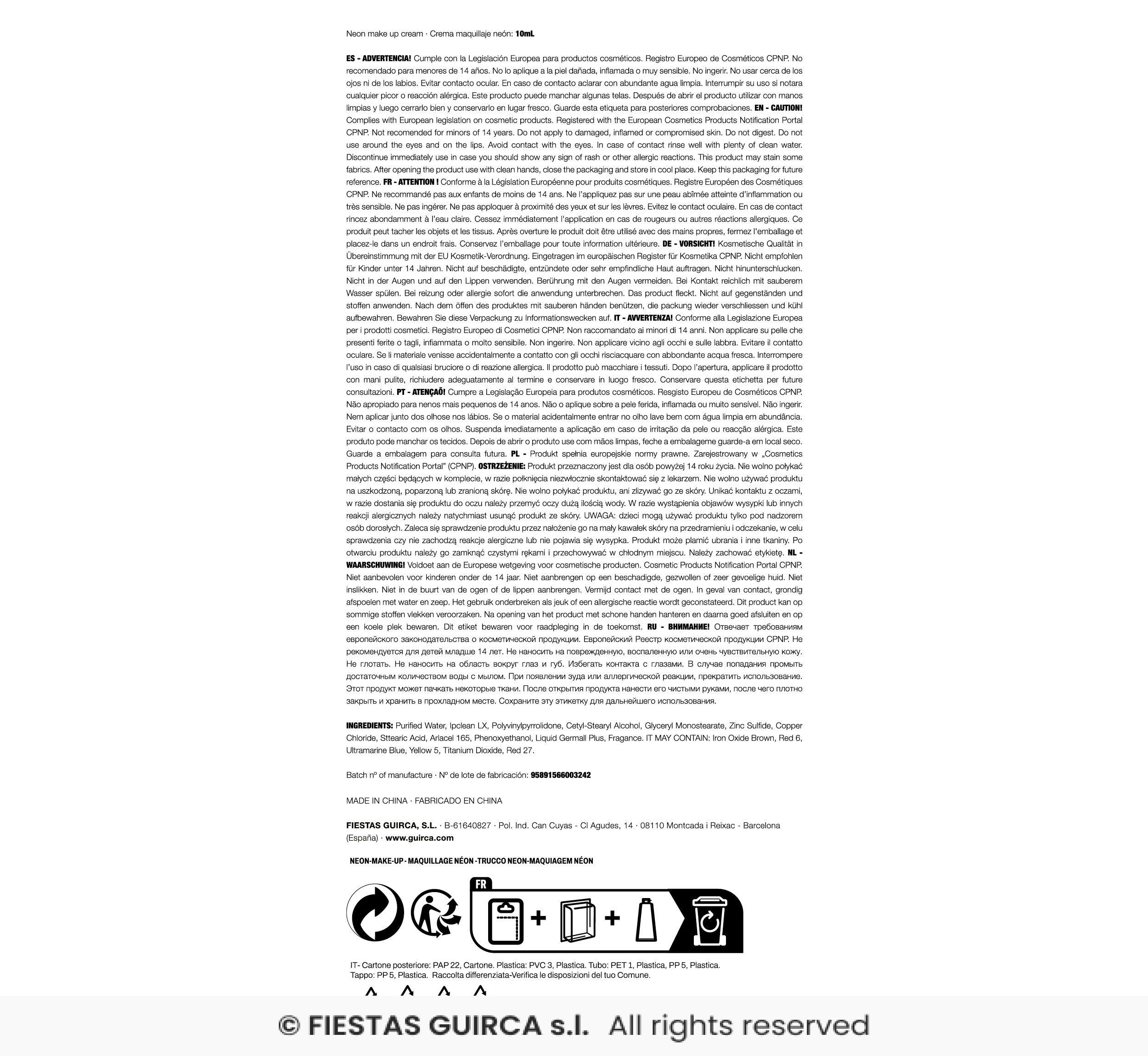 MAQUILLAJE EN TUBO DE CREMA VERDE NEON 10 ML