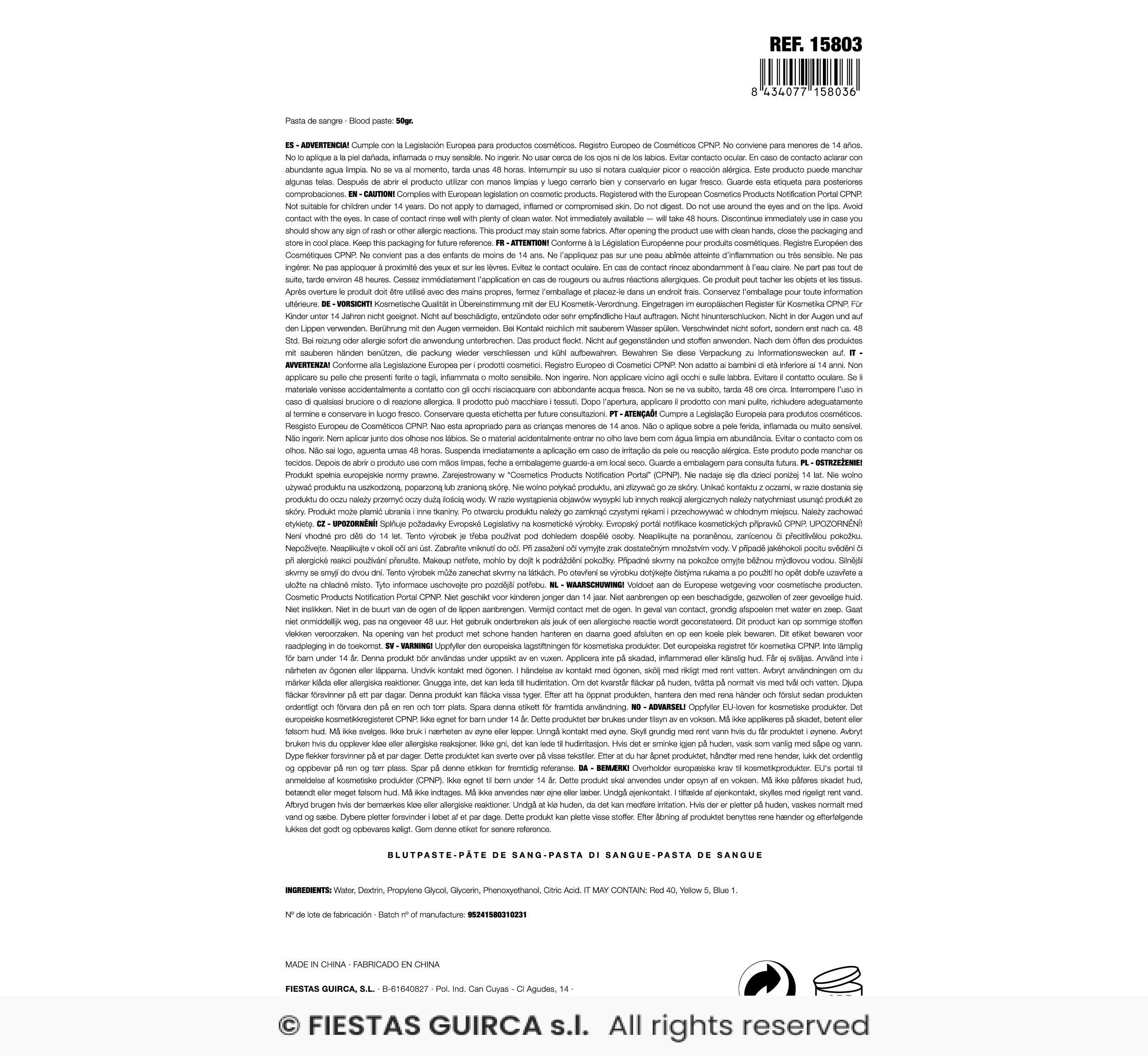 Pasta de sangre, 50 gr cantidad