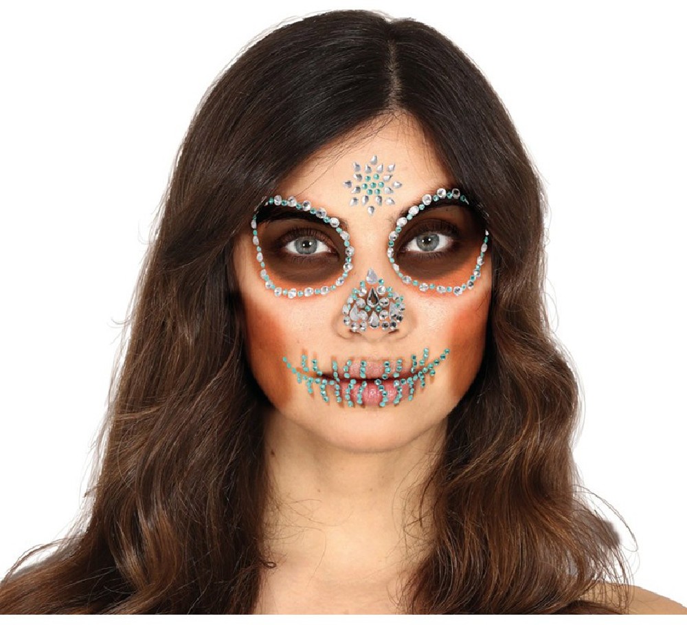 JOYAS FACIALES ADHESIVAS CALAVERA VERDE