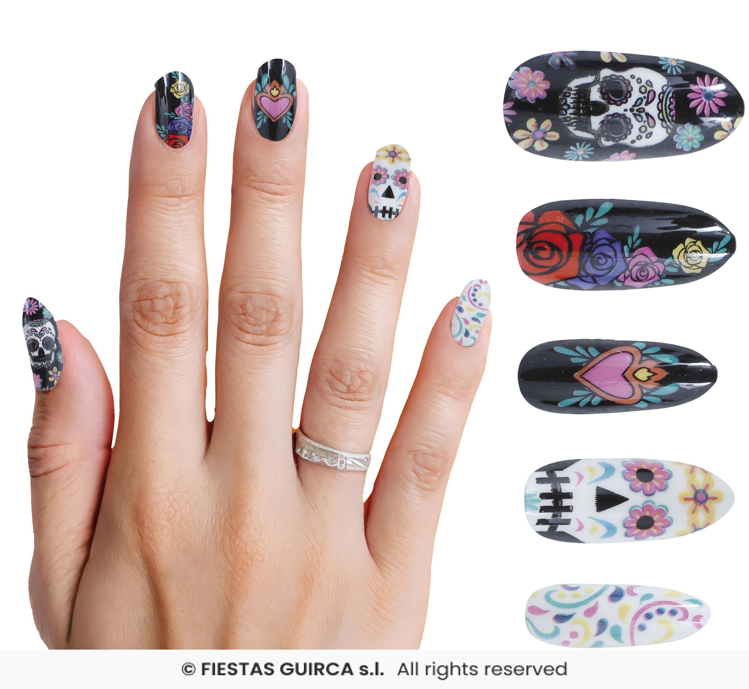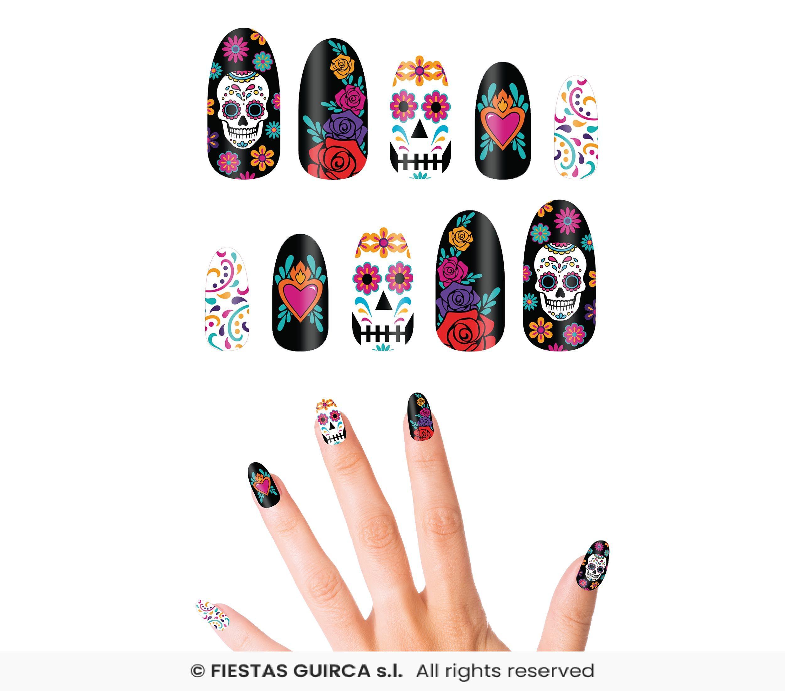 Uñas de Catrina. El paquete contiene 12 uñas con glue.