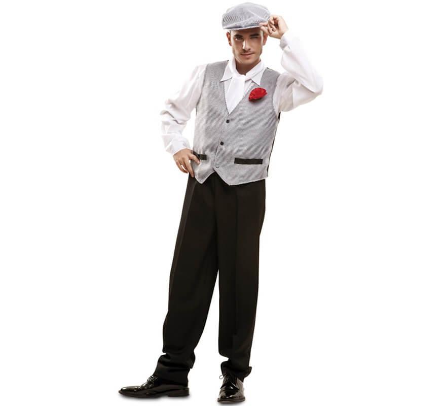 DISFRAZ CHULAPO MADRILEÑO XXL Disfraz de chulapo o madrileño para hombre. Incluye Gorra, pañuelo y chaleco con clavel. NO incluye Pantalón, camisa ni calzado. Perfecto para la Feria de San Isidro o las Fiestas de la Paloma y bailar un chotis ´agarrao´ sin salirte de una baldosa… ¡¡¡ Irás más chulo que un ocho !!!