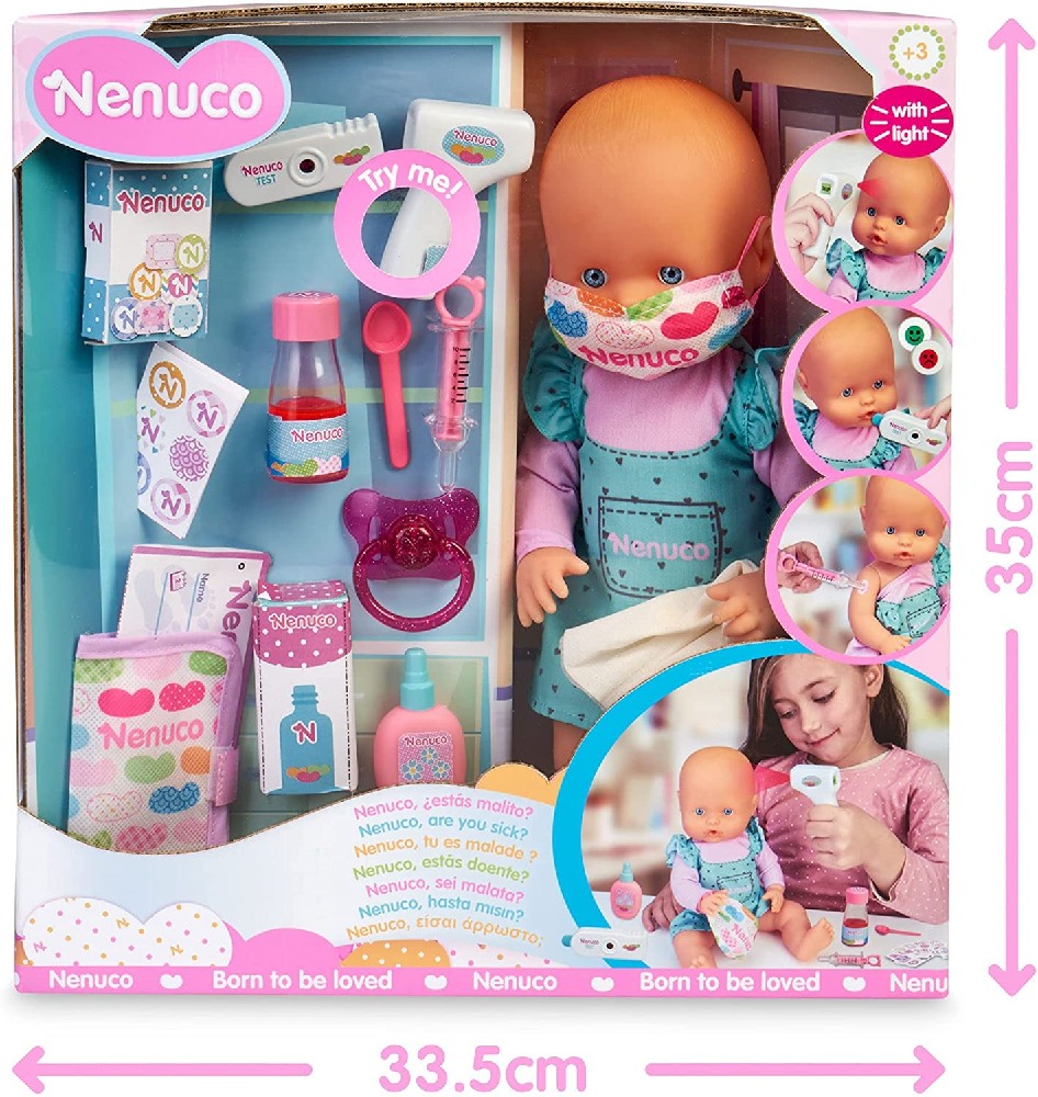 Nenuco – ¿Estás malito?, muñeco bebé con accesorios para ver si está enfermo y jugar a ser médico o enfermera/o y darle todos los cuidados, juguete para niños y niñas de 3 años, Famosa (700016658)