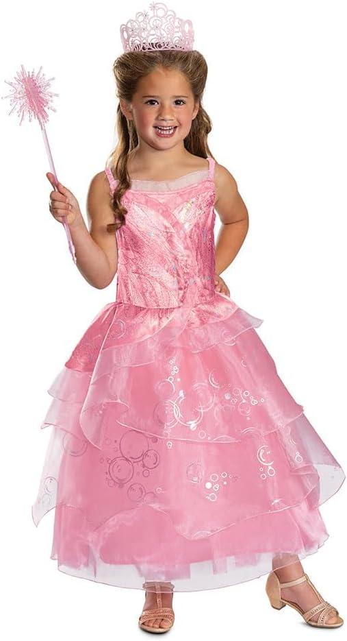 Inspiración Cinematográfica: El disfraz para niñas de Glinda sigue fielmente la línea del icónico vestido de la película, capturando la elegancia y magia del personaje