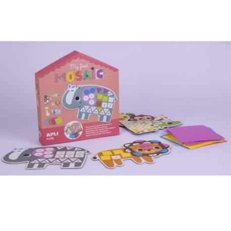 Mosaico de 5 láminas XL precortadas con la forma de diferentes animales de la selva y 8 láminas de goma EVA con 4 colores diferentes. Fácil de usar: las fichas de cartón disponen de espacios blancos con puntos de colores a modo de guía para rellenar con las lentejuelas del color adecuado. Producto con un alto valor didáctico, perfecto para desarrollar des de pequeños la destreza y la precisión, así como estimular la psicomotricidad fina, trabajar el desarrollo óculo-manual y favorecer la orientación espacial. Recomendado para niños a partir de 3 años.