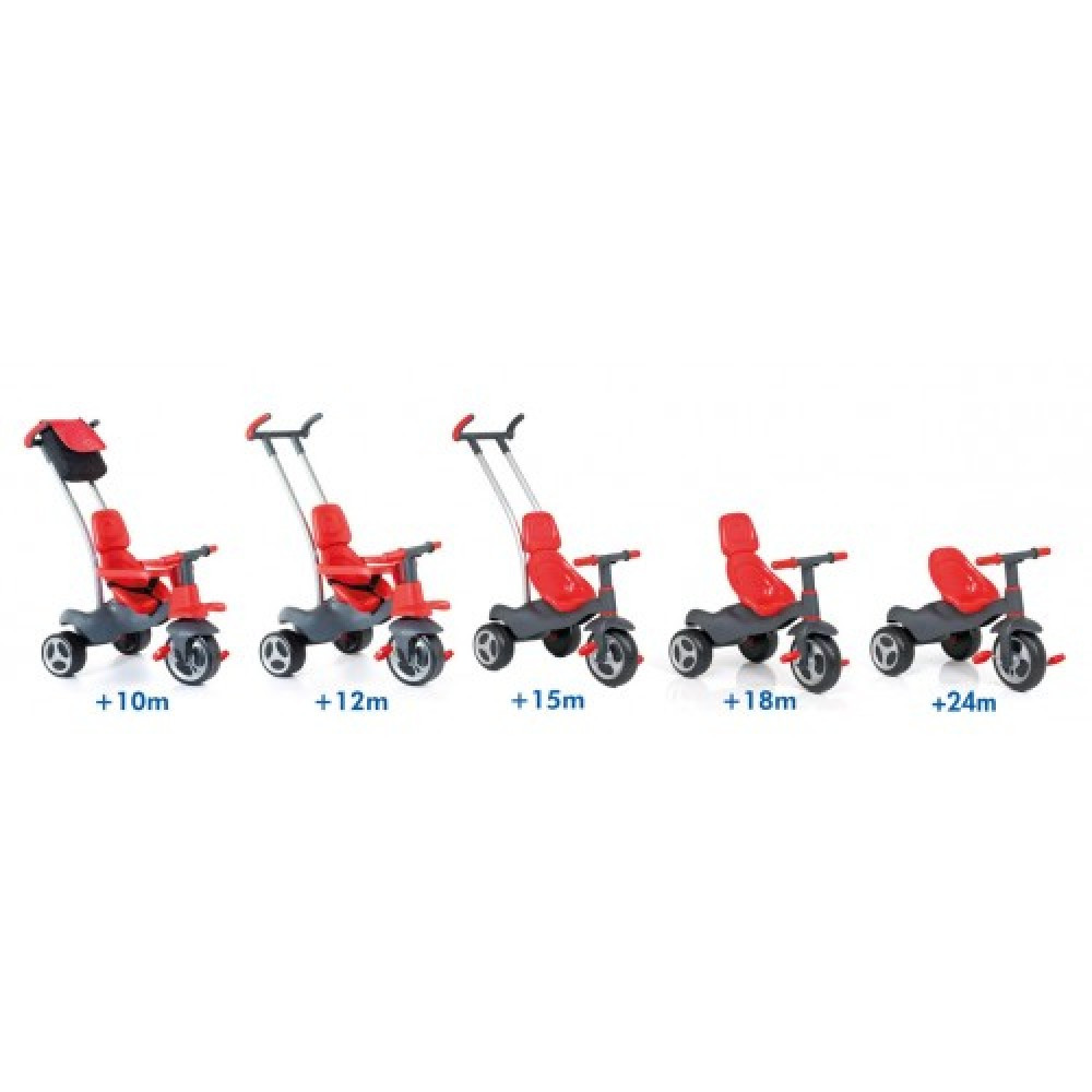 El triciclo para niños Urban Trike Soft Control cuenta con el sistema Evolutive que permite una evolución del triciclo para usarlo desde los 10 meses hasta los más de 24 meses, esto lo convierte en un triciclo 5 en 1, ya que todas sus partes son fáciles de quitar y poner según la necesidad y la seguridad que se necesite con el niño o la niña.