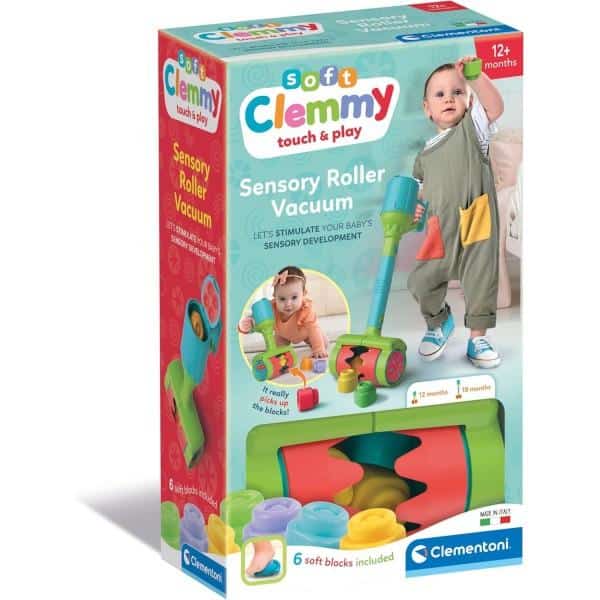 Una aspiradora con diseño Clemmy que atrapa los bloques y estimula el desarrollo sensorial y el juego imaginativo. Se mango regulable permite que la aspiradora crezca con el niño estimulando el juego imaginativo y las habilidades motrices. El juego tiene 5 bloques blandos Clemmy y diferentes exturas e insertos de material blando para desarrollar la percepción táctil del bebé. Edad recomendada a partir de 12 meses.