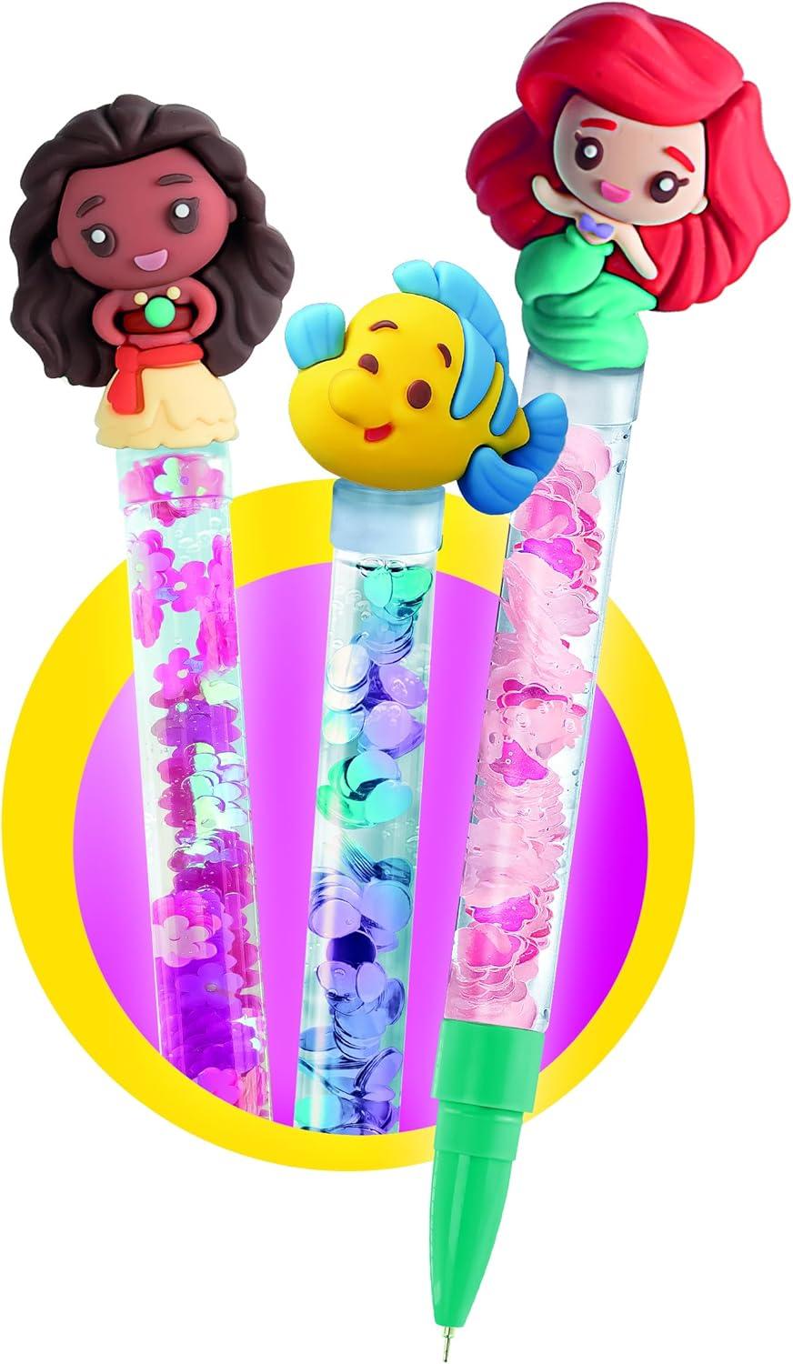 ¡El nuevo Taller de los bolígrafos en versión Princesas Disney! El juego perfecto para crear colorodísimos bolígrafos con las princesas Disney más icónicas. Una práctica mesita de trabajo y un completo set de herramientas para personalizar los bolígrafos con un montón de accesorios, las princesas Disney más famosas y sus elementos más emblemáticos. El kit contiene bolígrafos, tintas de colores, decoraciones iridiscentes de diferentes formas y colores, personajes y pegatinas personalizadas de las princesas Disney.