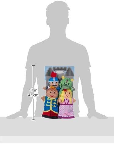 Este juego de cuatro títeres de mano incluye una colección real de personajes; diseñados para ayudar a los niños y a los cuidadores a hacer juegos de roles de manera sencilla y divertida, el príncipe, la princesa, el caballero y el dragón son una fuente de inspiración para cuentos y aventuras imaginativas increíbles