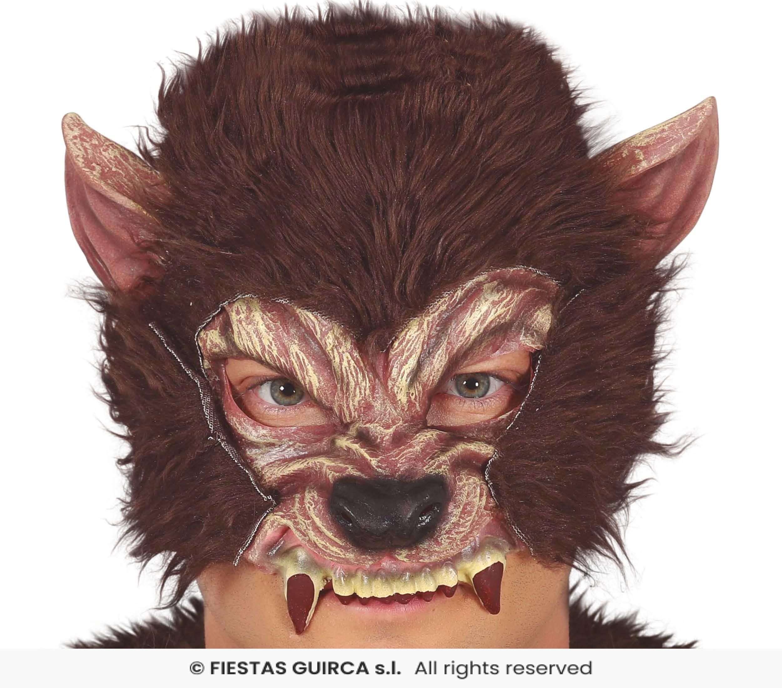 MEDIA MASCARA HOMBRE LOBO CON PELO, LATEX