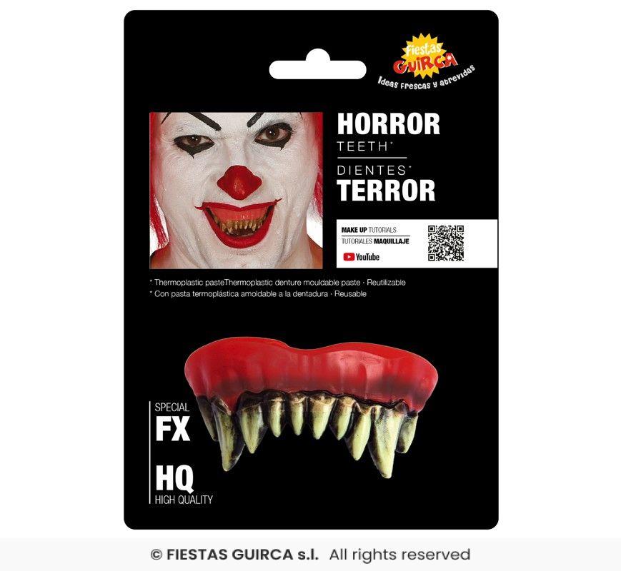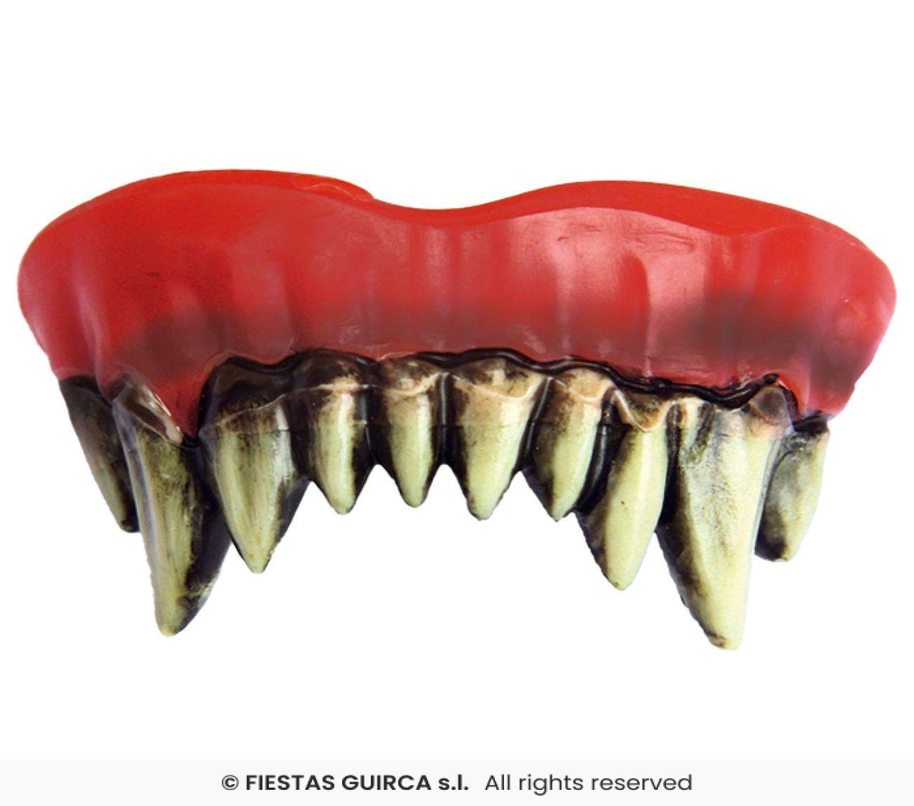 Terroríficos dientes de latex, para completar tu disfraz de zombie, muerto viviente, hombre lobo, payaso asesino, etc.