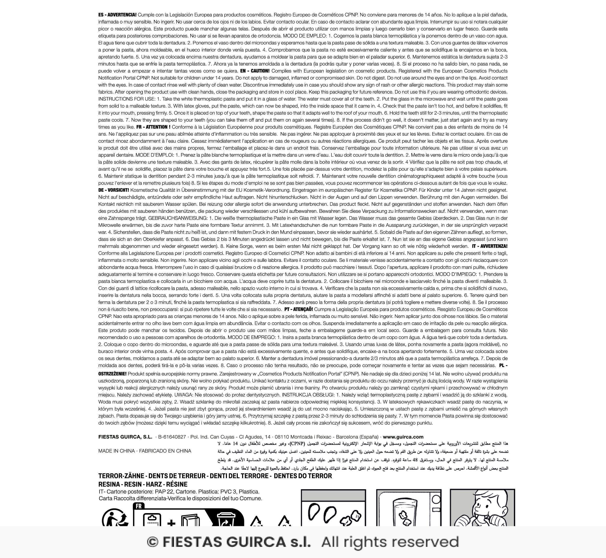DIENTES MONSTRUO CON TERMOPLASTICA Terroríficos dientes de latex, para completar tu disfraz de zombie, muerto viviente, hombre lobo, payaso asesino, etc. Los dientes incluyen una pasta termoplástica adaptable para que te sea muy sencillo de poner y quitar. Tiene un efecto muy realista. Incluye instrucciones de uso.