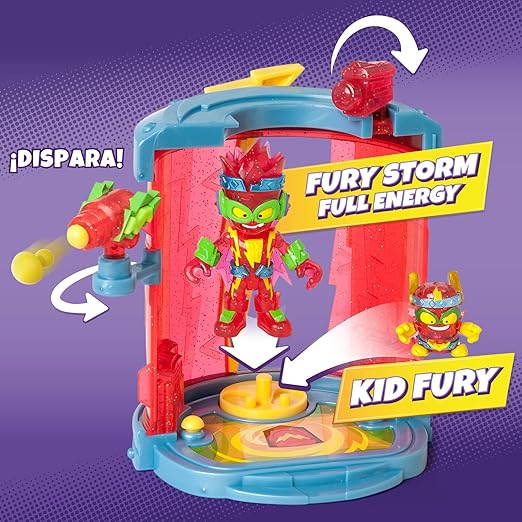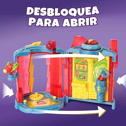 ¡DESCUBRE LA GUARIDA SECRETA DE FURY STORM! – Una vez dentro, encontrarás la energía Kazoom y podrás acceder a la zona secreta para conseguir las armas escondidas, la coraza y un súper vehículo-skate ¡para hacer fechorías en Kaboom City!