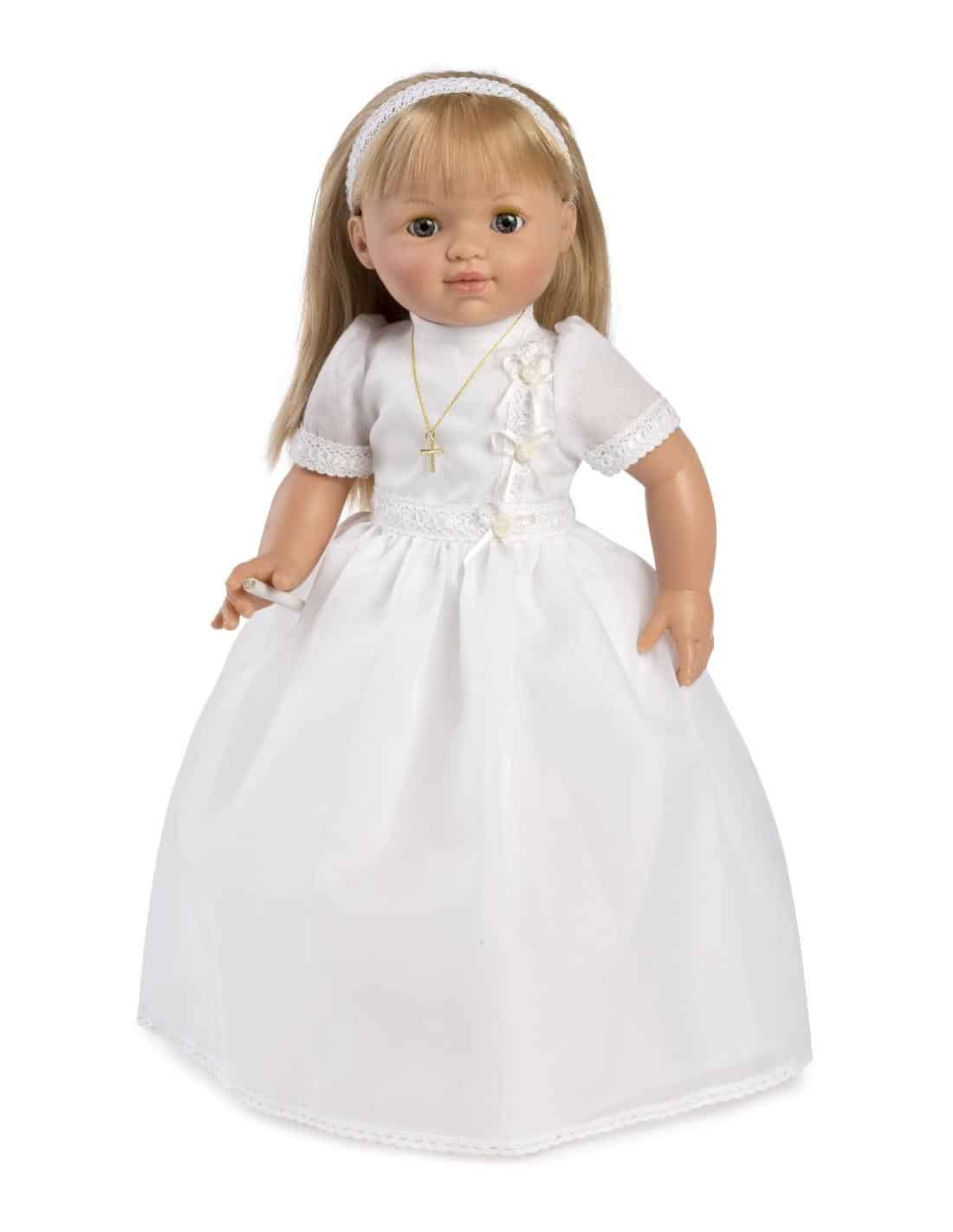 María Comunión, rubia, vestido largo blanco y diadema – 50cm