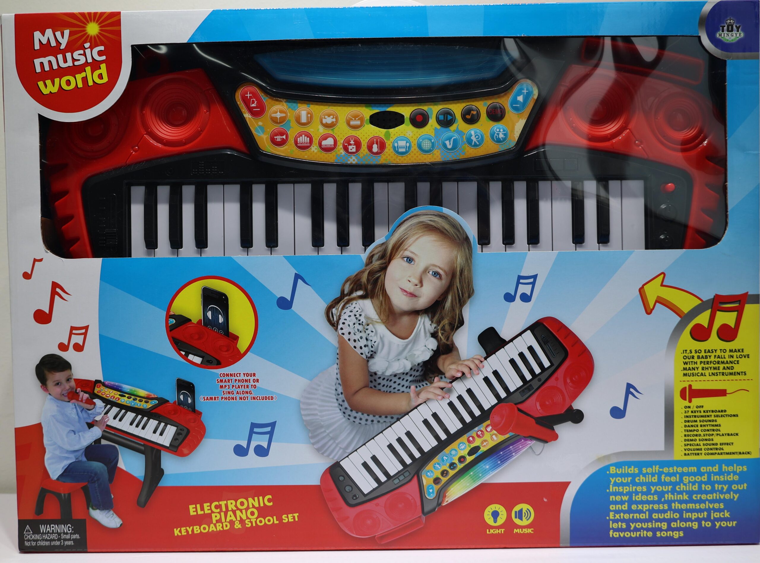 Órgano electrónico infantil con luces, sonidos y múltiples funciones musicales. Incluye taburete, micrófono y entrada de audio para conectar el móvil y tocar tus canciones favoritas. Un set completo para que los peques disfruten creando música, desarrollen su creatividad y pasen horas de diversión. Ideal como primer teclado para niños a partir de 3 años.