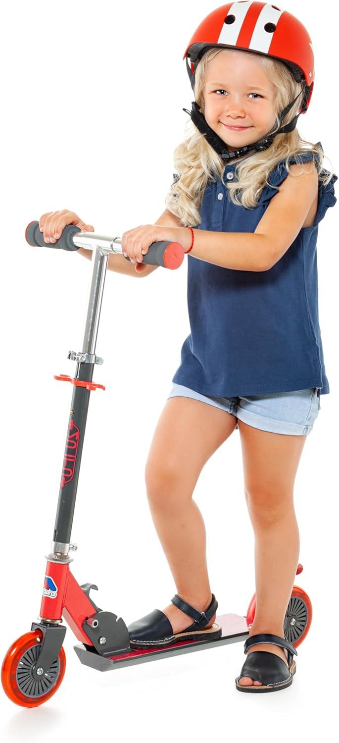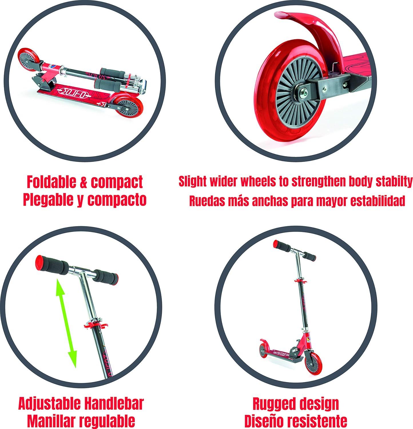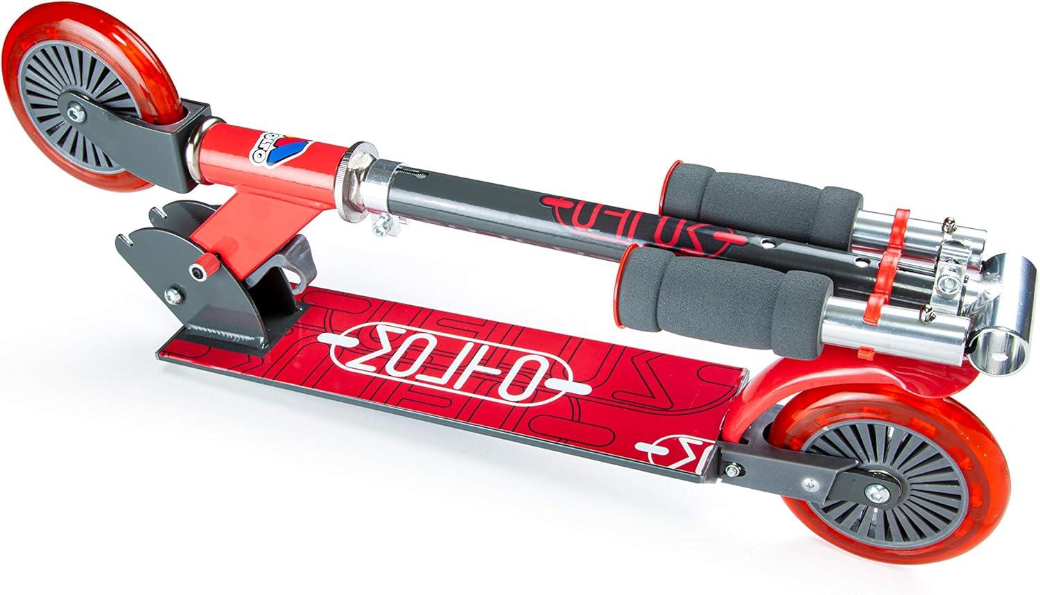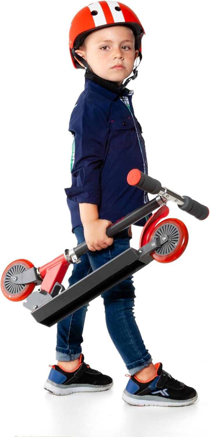 Patinete de color Rojo para niños y niñas, fabricado en aluminio, plegable y con cierre de seguridad.