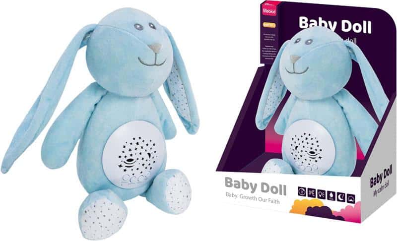 Conejito Azul Luminoso con Luz y Sonido – Peluche Baby Doll