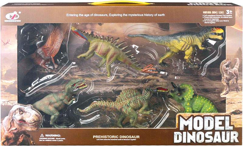 Caja de dinosaurios infantiles que incluye 6 figuras de diferentes especies prehistóricas. Cada figura cuenta con detalles realistas y colores llamativos, ideales para el juego imaginativo y la recreación de aventuras jurásicas.