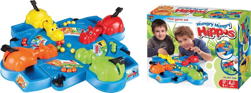 Cada jugador controla un hipopótamo de color y debe pulsar su palanca para que su hipopótamo “coma” el mayor número de bolitas posible. Gana quien consiga más bolas al final de la partida. Es perfecto para desarrollar la coordinación mano-ojo, los reflejos y la competitividad sana.