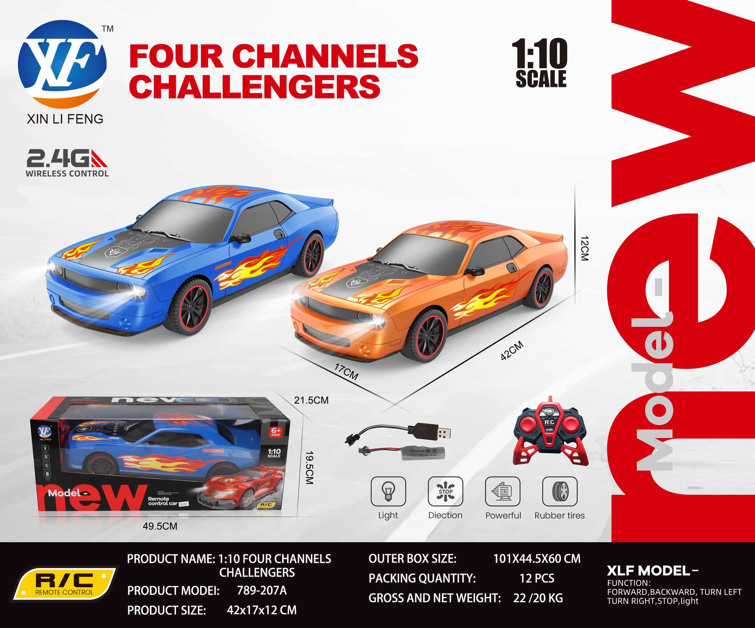 RC Coche Four Channels Challenger 1:10 – Coche Teledirigido 2.4GHz con Luces
