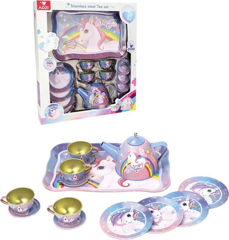 Juego de Té Metálico Unicornio con Bandeja | Set Infantil Completo