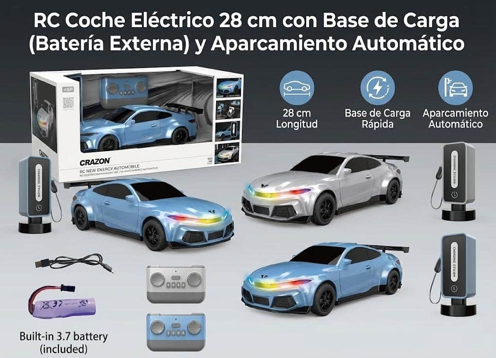 RC Coche Eléctrico 28 cm con Base de Carga y Aparcamiento Automático