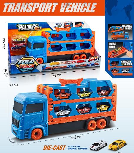 Camión Portacoches Azul con 2 Vehículos Die-Cast y Pista 1,65 m
