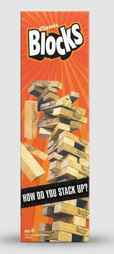 Jenga Classic de 54 piezas de madera, el juego original de apilar y retirar bloques que nunca pasa de moda. Construye la torre, retira una pieza sin que se caiga y colócala arriba… ¡la tensión aumenta en cada turno!