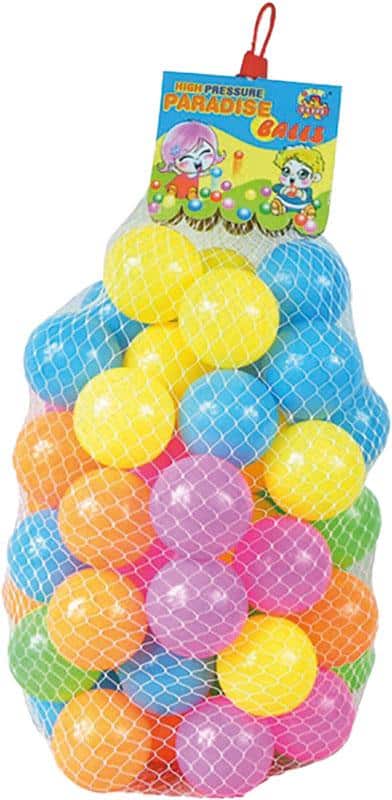 Este pack de 50 bolas de colores en red (7 cm) es ideal para crear tu propia piscina de bolas en casa o para renovar las bolas de espacios infantiles. Fabricadas en material ligero y resistente, son seguras para los más pequeños y vienen en una combinación de colores muy llamativos: amarillo, azul, rosa, verde, naranja, lila y más.