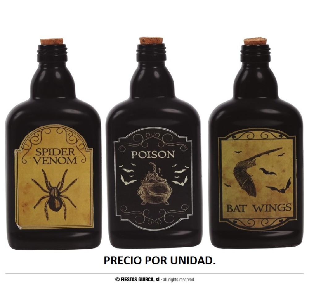 BOTELLAS VENENO VIDRIO SURTIDAS 19 CMS.