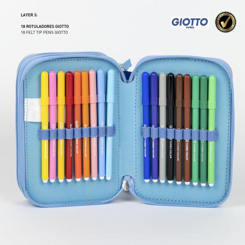 Contenido completo: Incluye 18 lápices de colores, 18 rotuladores, 2 bolígrafos, una regla, tijeras, goma de borrar y un sacapuntas. Todo lo necesario para las actividades escolares.