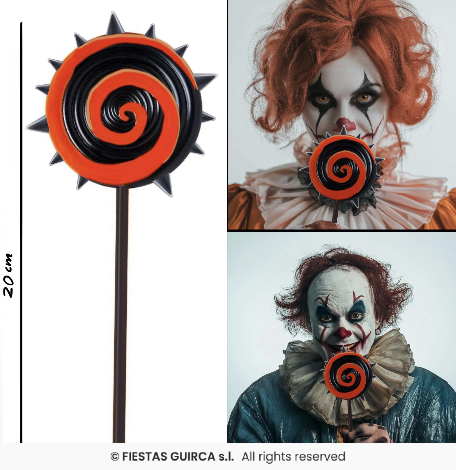 Añade un toque espeluznante a tu decoración de Halloween con esta piruleta falsa en negro y naranja. Perfecta como decoración de mesa, accesorio para fiestas de disfraces o exposiciones temáticas.