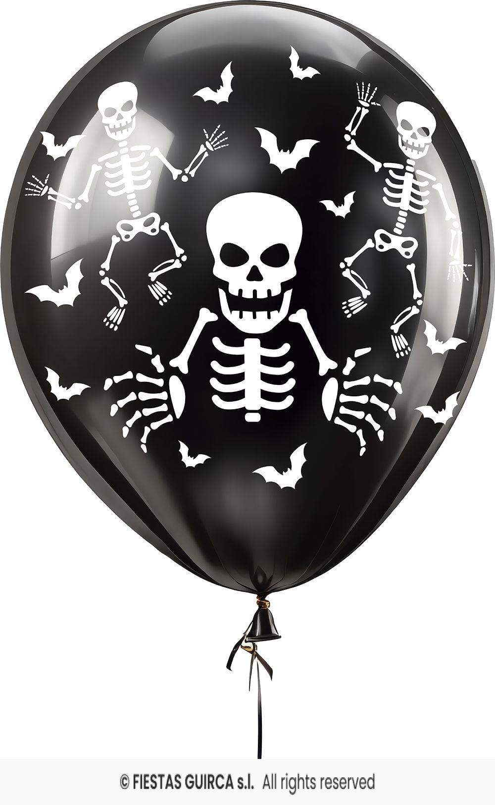 BOLSA 10 GLOBOS NEGROS ESQUELETOS 30 CMS cantidad