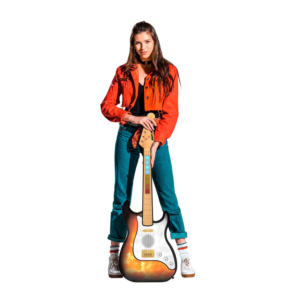 Con la Guitarra Eléctrica JAM HERO 3 de tamaño real, vivirás la experiencia de tocar una guitarra auténtica con un toque moderno e interactivo. Esta guitarra electrónica está equipada con sensores táctiles y 8 pads LED en el mástil, permitiendo aprender y tocar de forma intuitiva y divertida.Gracias a sus más de 300 sonidos integrados, podrás tocar acordes mágicos, solos espectaculares, acompañamientos, acapellas y hasta 50 ritmos musicales diferentes. Además, incluye 10 estilos de guitarra que van desde el rock, pop o reggae hasta blues y balada