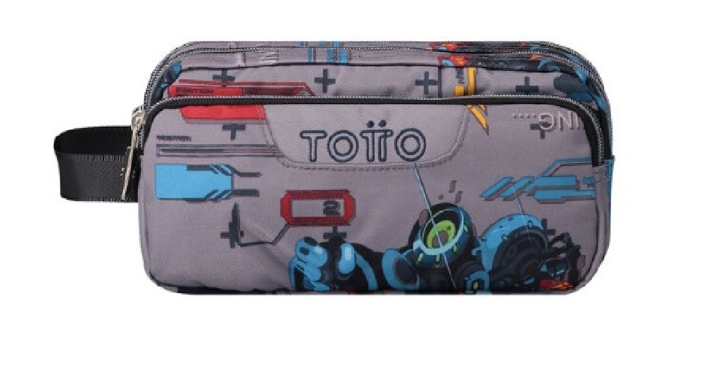 ESTUCHE ESCOLAR TRES COMPARTIMENTOS GRIS CON ROBOT