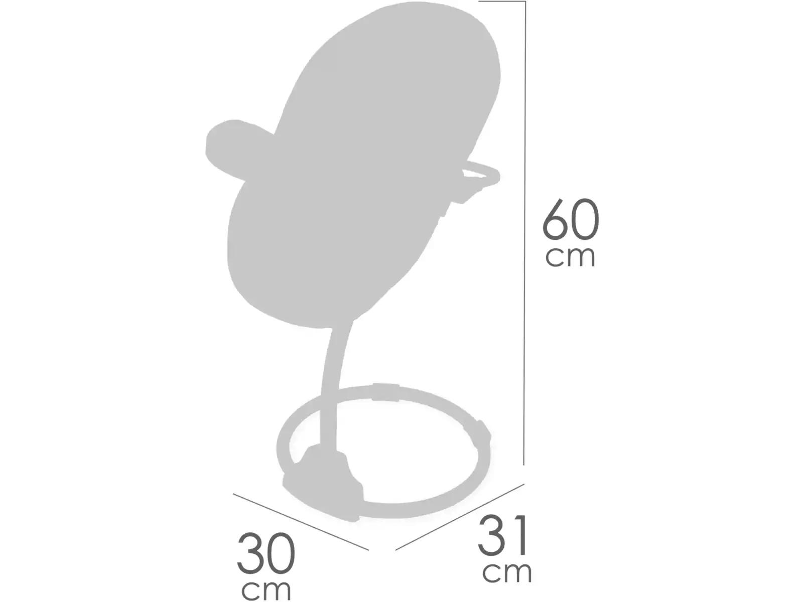 Medidas aproximadas de la trona columpio: 60 cm de alto, 30 cm de ancho y 31 cm de fondo.