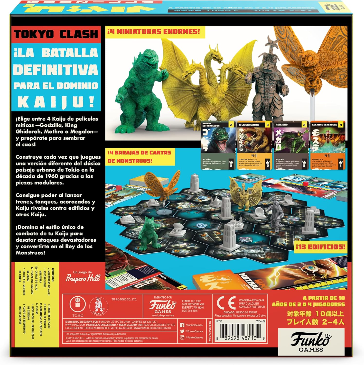 Funko Juego de mesa Godzilla Tokyo Clash. ¡Prepárate para una épica batalla entre colosales monstruos Kaiju en Godzilla: Tokyo Clash! En este juego de estrategia para 2 a 4 jugadores, te convertirás en uno de los icónicos Kaiju de las películas clásicas, como Godzilla, King Ghidorah, Mothra o Megalon. Destruye edificios, enfrenta a otros monstruos gigantes y siembra el caos en la ciudad de Tokio en los años 60.