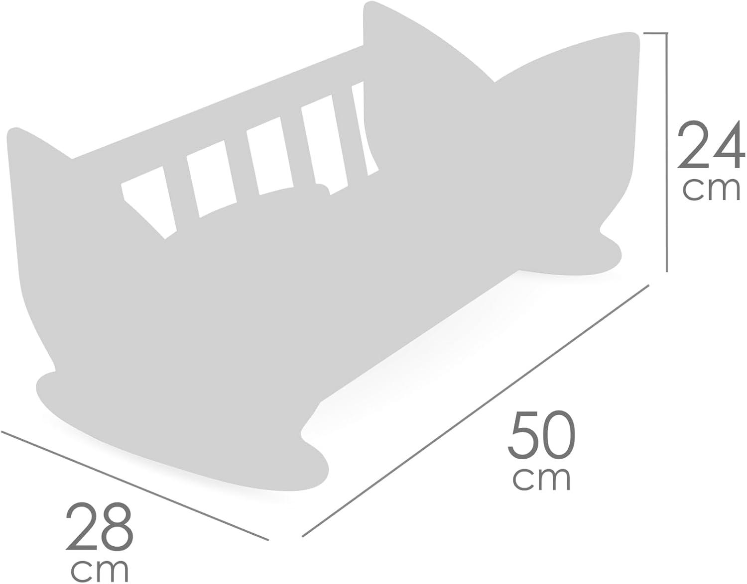 Medidas aproximadas de la cuna: 24 cm de alto, 28 cm de ancho y 50 cm de largo.