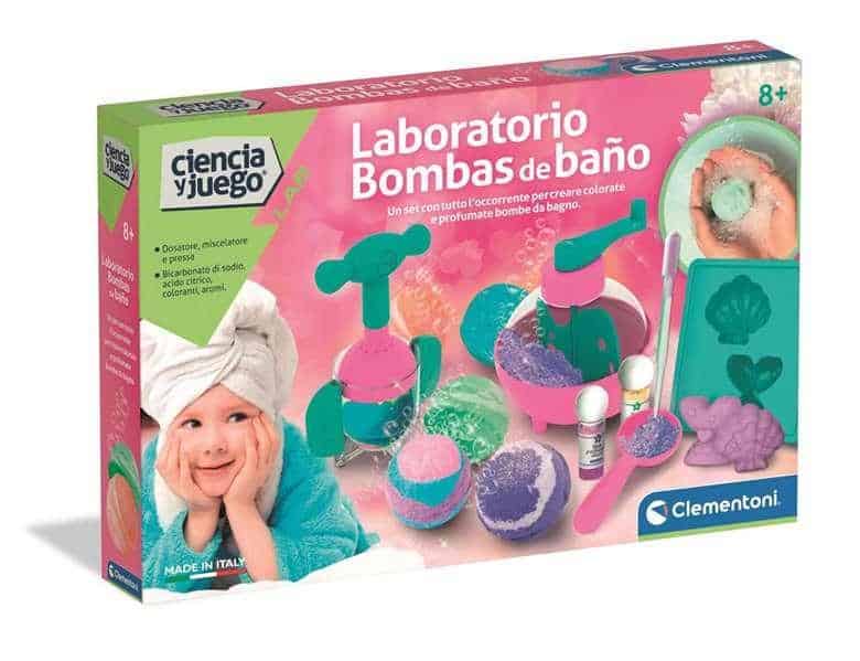 Un auténtico laboratorio con todos los instrumentos y las sustancias químicas y cosméticas necesarias para crear bombas efervescentes, colorias y perfumadas. El kit permite mezclar las sutancias, modelarlas y dejarlas secar para crear bath bombs personalizadas y especiales.