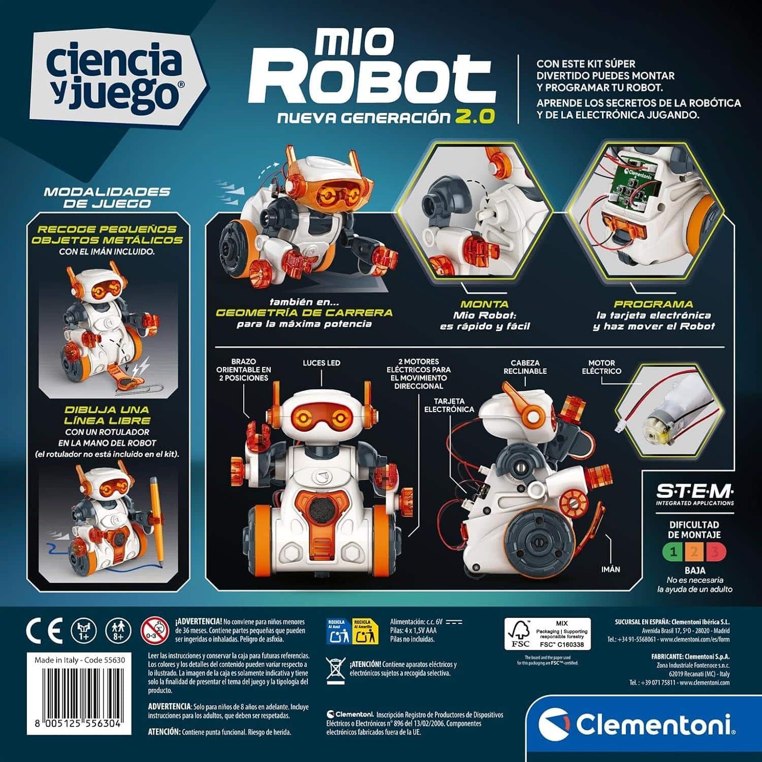 Clementoni – New Mio Robot – Kit de Robot Educativo para Niños +8 años, Montaje DIY con Modos de Juego, Movimiento y Magnetismo, Aprendizaje Stem – 55630