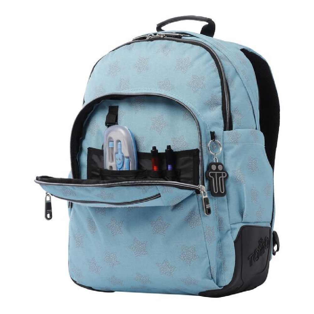 MOCHILA ESCOLAR AZUL Y ESTRELLAS – MORRAL CRAYOLES