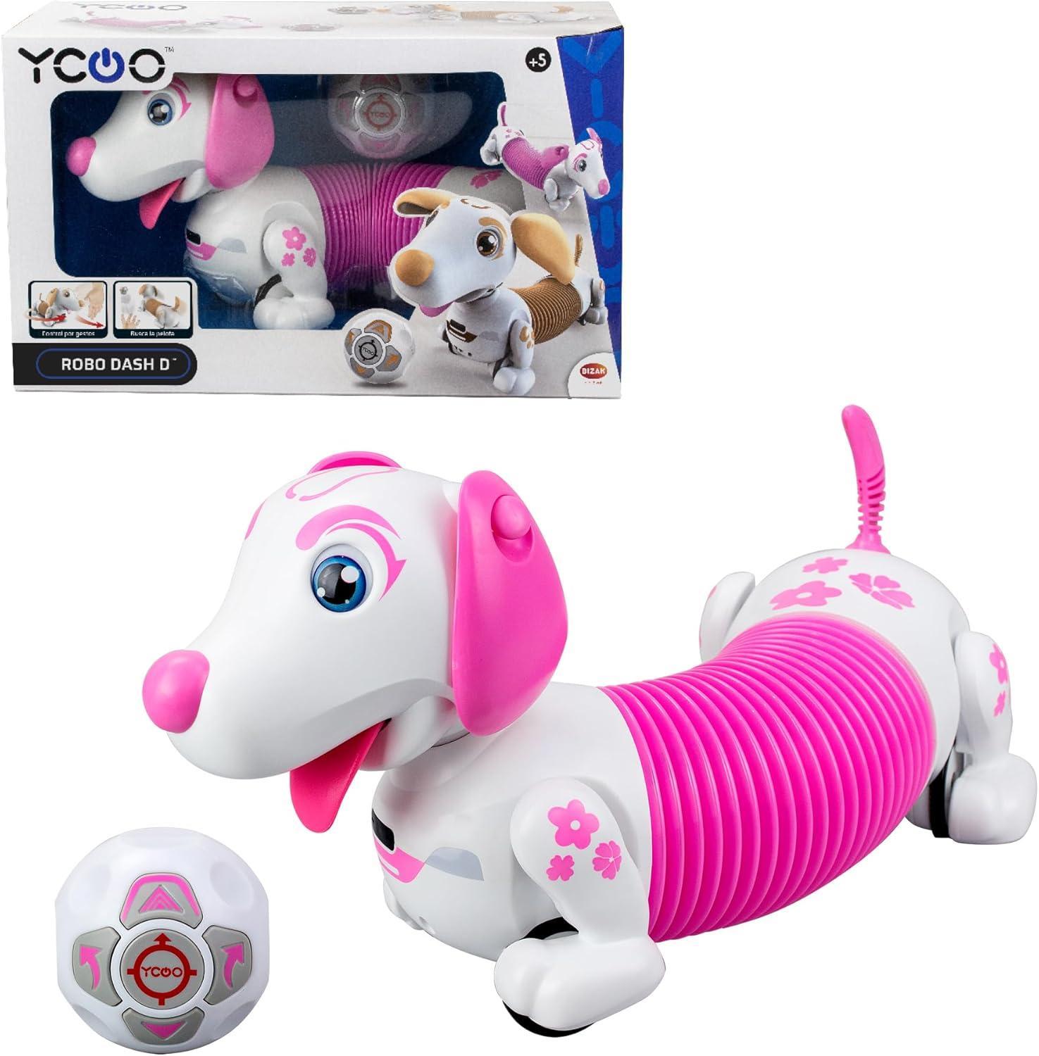 ROBO DASH ROSA es un cachorro robótico con control directo y gestual. Seguirá las órdenes de los gestos de tu mano para hacer diferentes trucos. Usa la pelota como mando directo para decirle adónde tiene que ir. Haz rodar la pelota y él la buscará. Con función detección de obstáculos y seguimiento automático: ¡anda con él y te seguirá!