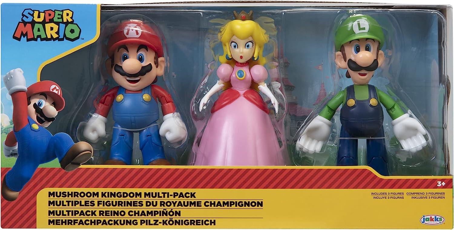Super Mario – Diorama Multipack Reino Champiñón con 3 Figuras de 10 cm Articuladas – Las Figuras Tienen Poses Propias Clásicas del Videojuego – Juguetes para Niños 3 años